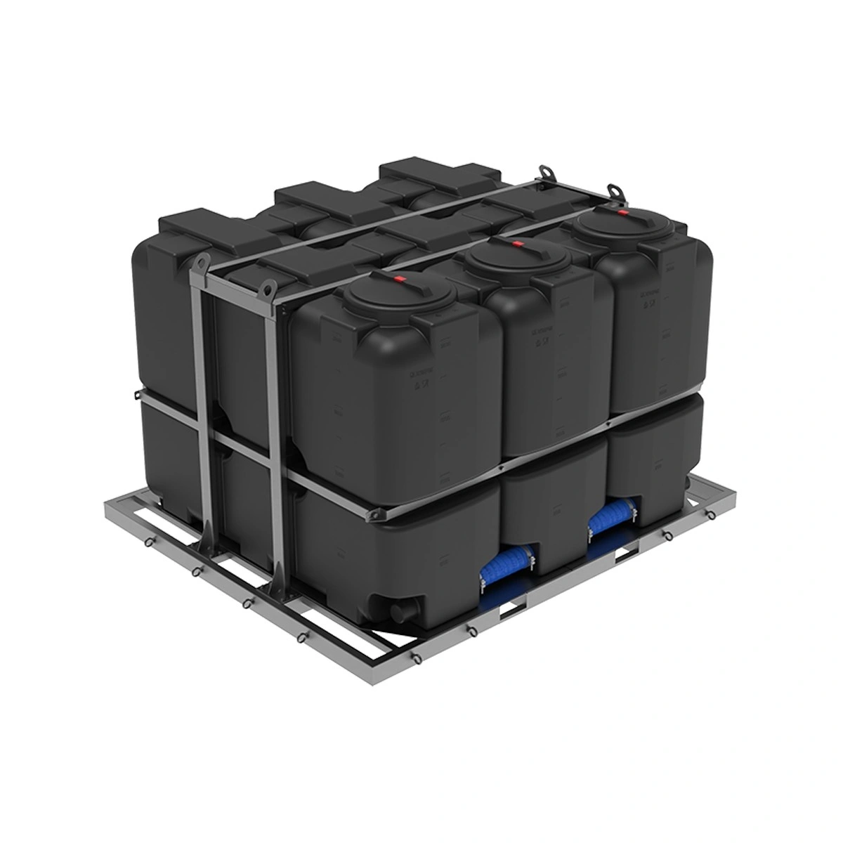 безопасная транспортировка: прочная обрешетка надежно фиксирует емкости, предотвращая их смещение в любом направлении, а низкий центр тяжести всей кассеты обеспечивает повышенную устойчивость транспортного средства в пути;