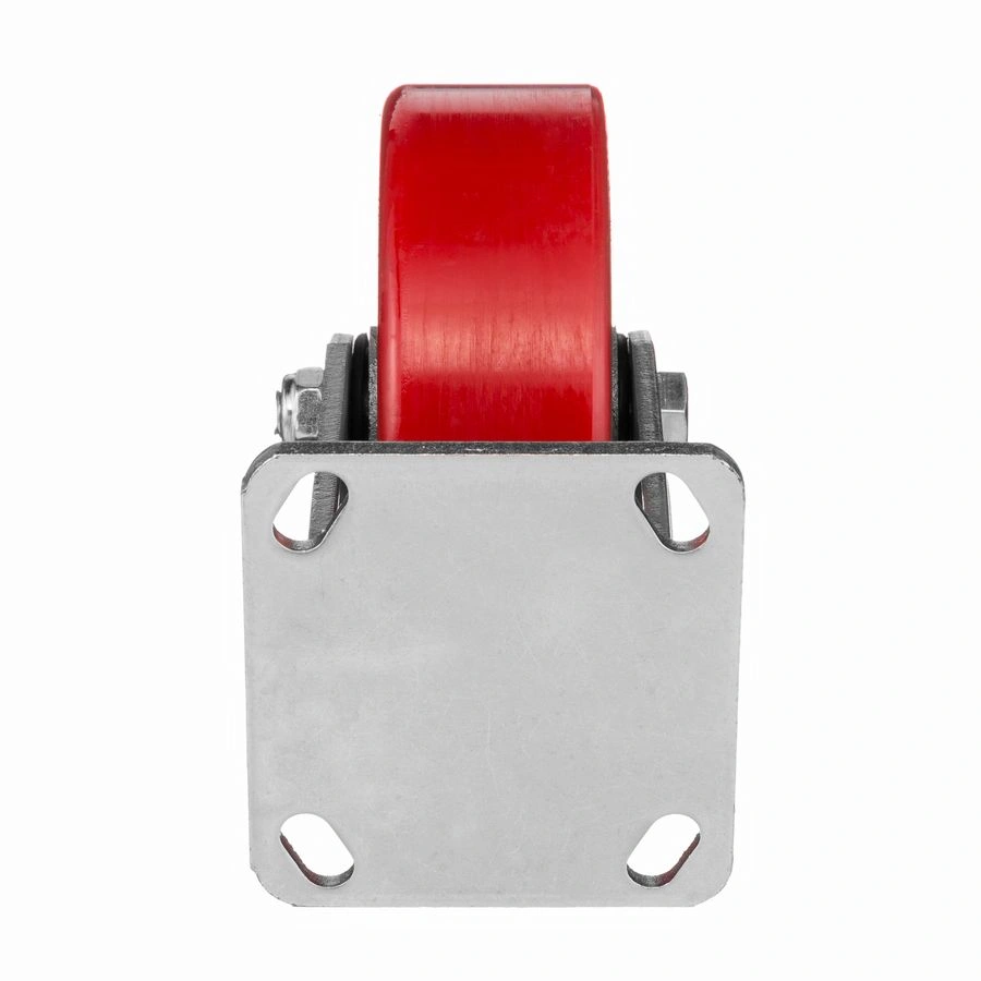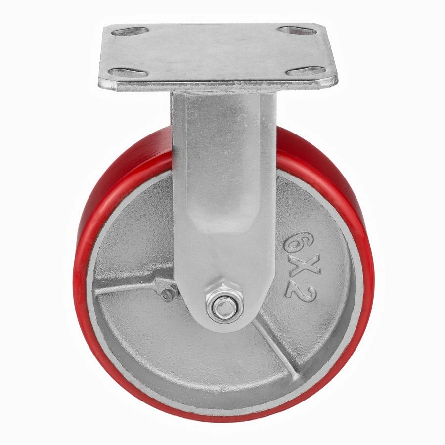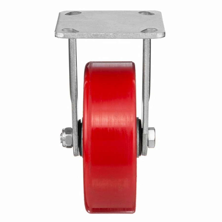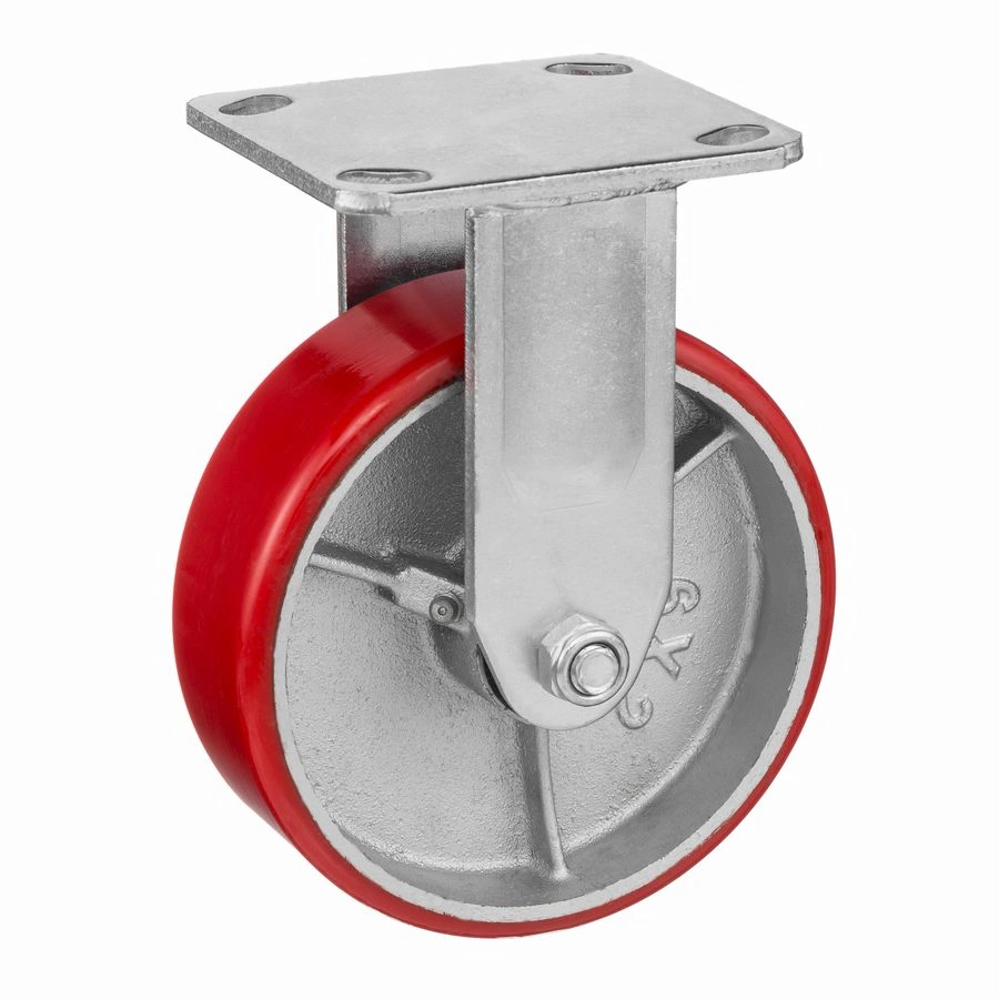 Колесо 1041-152, диаметр 152мм., чугун/полиуретан, неповоротное, игольчатый подшипник. Грузоподъемность 360кг. Колесо полиуретановое, центр из литого чугуна. В оси колеса-игольчатый подшипник. Стойкий к боковым ударам неповоротный кронштейн. Наличие масленки позволяет периодически обслуживать подшипник оси колеса. Крепление площадка под 4 болта. Колеса полиуретановые с чугунным сердечником широко применяются на бетонных полах преимущественно внутри помещений. Широко используются на тележках, строительных лесах и другом оборудовании, где требуется высокая грузоподъемность. При длительном нахождении под большой нагрузкой не деформируются. Возможно использование вне помещении на твердых покрытиях. Температура эксплуатации от -20 до +50С.