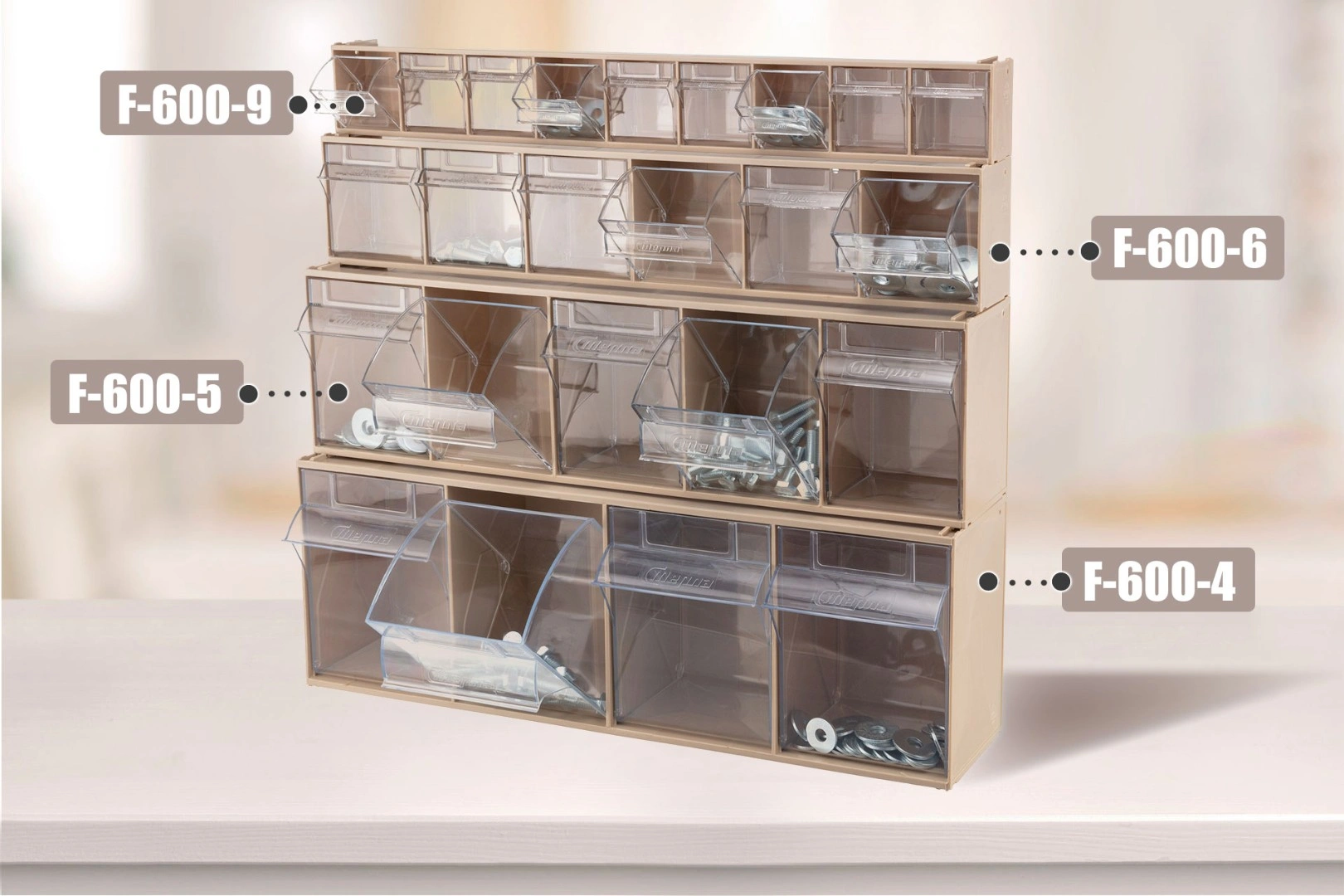 Короб откидной F-600-5-B, 600х140х168 мм 5 ячеек, бежевый / прозрачный, служит для хранения мелкоштучных предметов. Данная система хранения не подвержена случайному опрокидыванию. Откидные ячейки обеспечивают быстрый доступ к необходимым предметам. В случае необходимости полного высыпания или наполнения короб легко извлекается. Полезный внутренний размер каждой ячейки 108х98х107мм.
