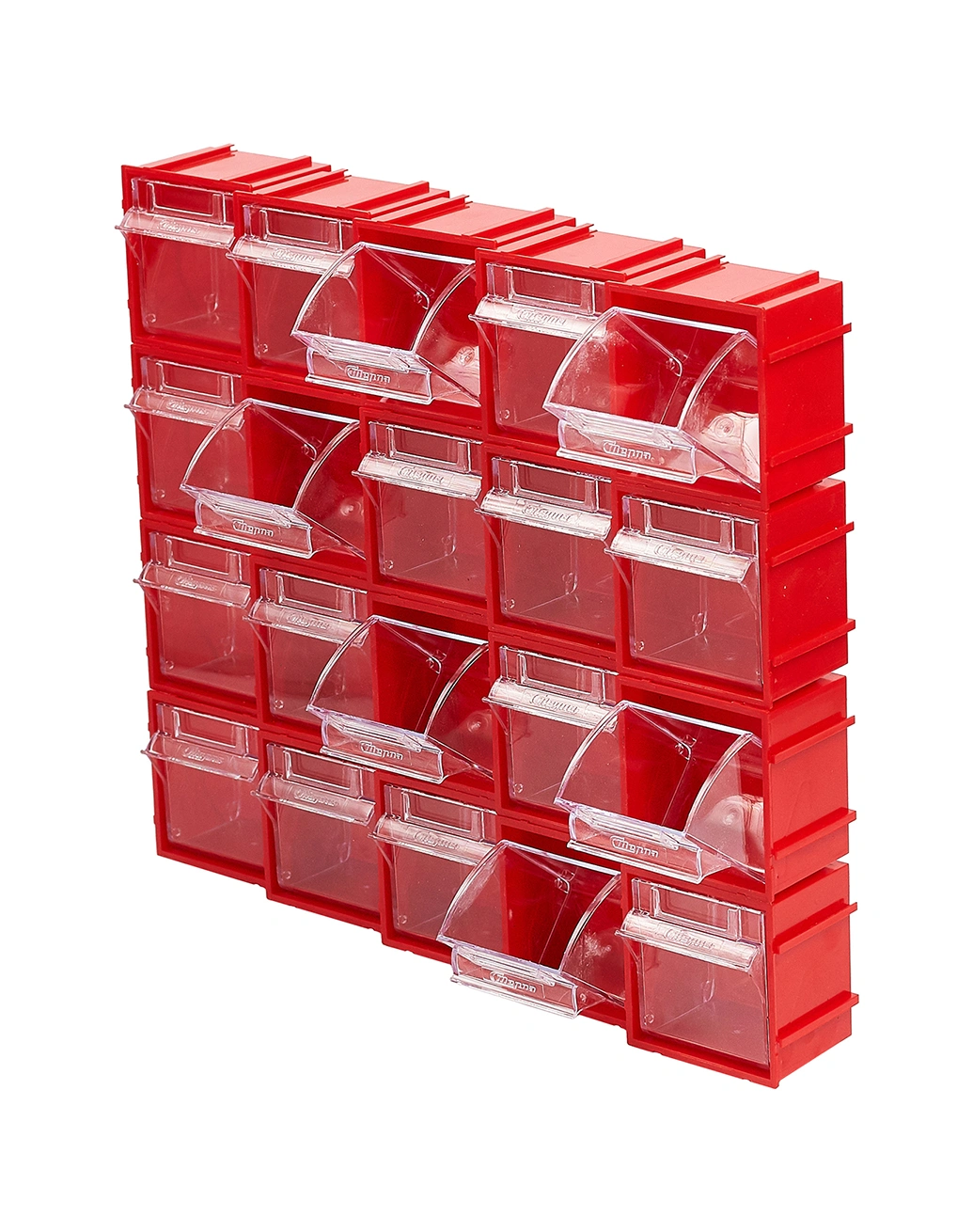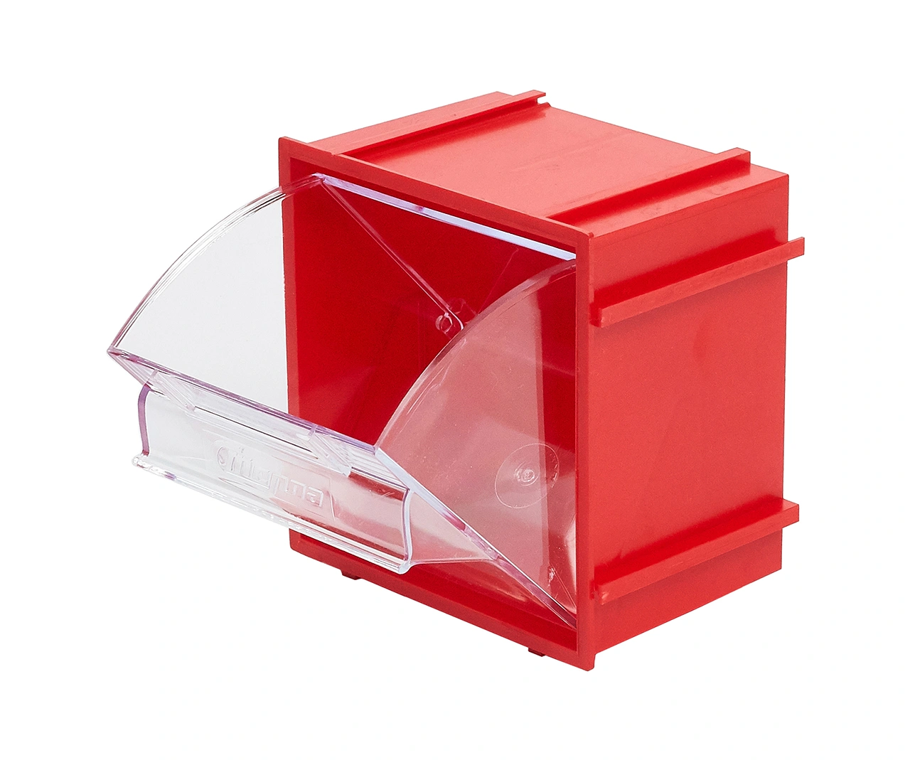 Короб откидной Стелла-техник Single-101 красный, прозрачный предназначен для хранения мелкоштучных изделий. Данная система хранения не подвержена случайному опрокидыванию. Полезный внутренний размер ячейки 50х43х47мм. Пластиковый короб имеет специальные пазы, благодаря которым можно соединять между собой несколько коробов, наращивать в ширину и высоту до нужных размеров, образуя модульную систему. На задней стенке присутствуют отверстия, что позволяют навешивать их на стену. Преимущества: Обзорность содержимого сквозь прозрачные внутренние ячейки. Стандартный цвет наружной кассеты откидного короба-красный, внутренней – прозрачный. На внутреннем коробе есть специальный отсек для информационных съемных бирок. Легкое и быстрое извлечение внутреннего короба для опустошения или наполнения. Температура эксплуатации от -10 до +70С.