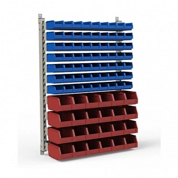 Стеллаж разработан специально для систематизации, хранения различных комплектующих, деталей, запчастей, крепежных и строительных материалов: болты, гайки, сверла, подшипники, метизы, фитинги, сантехника, зажимы, заклепки и т.д.