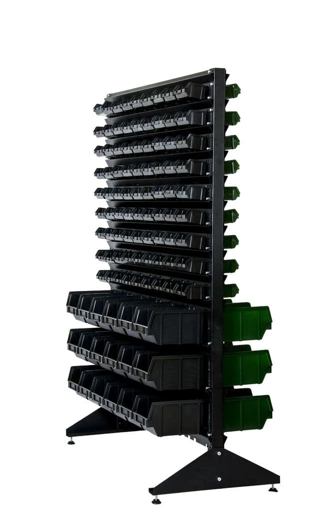 Стеллажи с ячейками упрощают работу с большим ассортиментом комплектующих и значительно сокращают время их поиска на складе или в магазине.